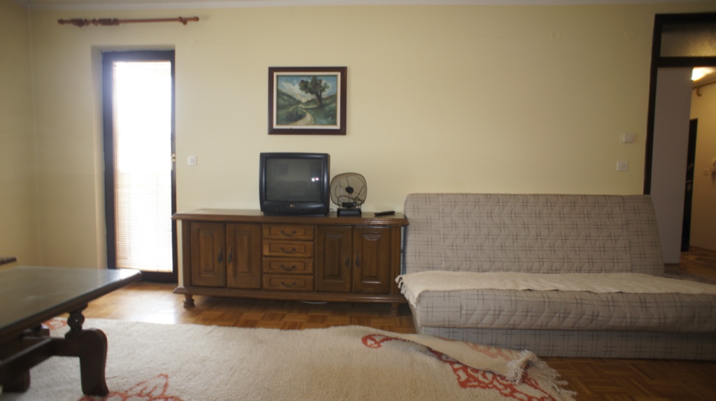 u spavaću sobu i dnevnu sobu sa trpezarijom i kuhinjom te izlazom na balkon.