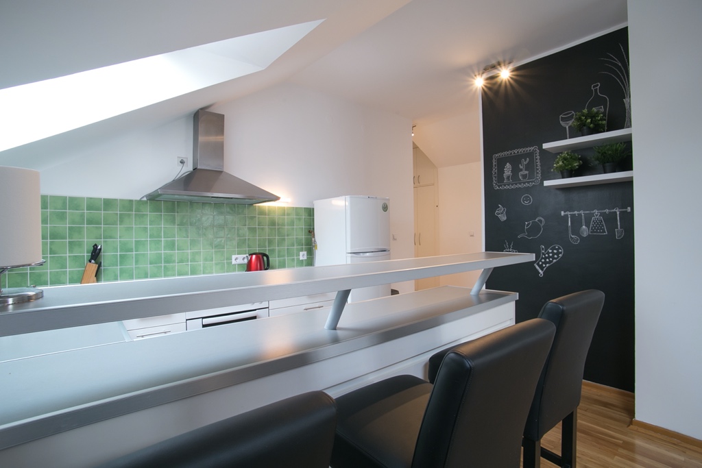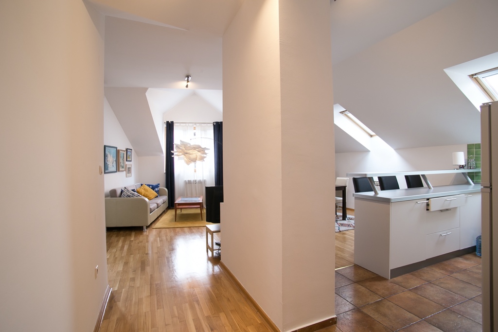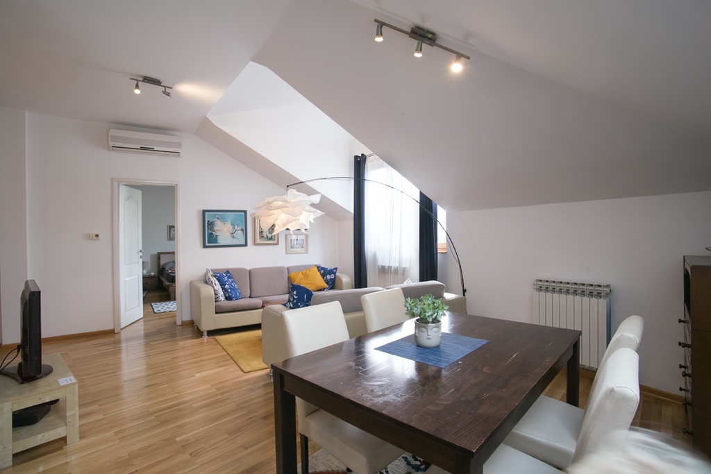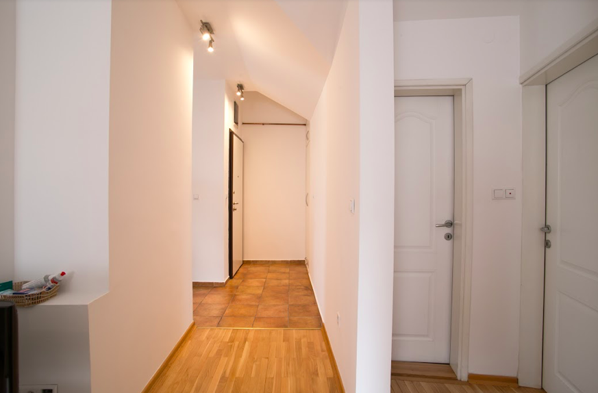 Ulaskom u stan pravo je dnevni boravak sa potpuno novom kuhinjom. Iz dnevnog boravka je ulaz u dvije spavaće sobe i kupatilo sa wc-om. .